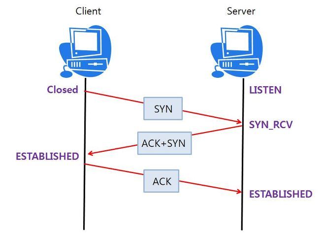 - 클라이언트는 서버에 접속을 요청하는 SYN 패킷 전송, 이때 클라이언트는 SYN/ACK 응답을 기다리는 상태